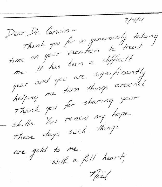 Hi Dr. Corwin, Received 02/09/2011 ~ with permission